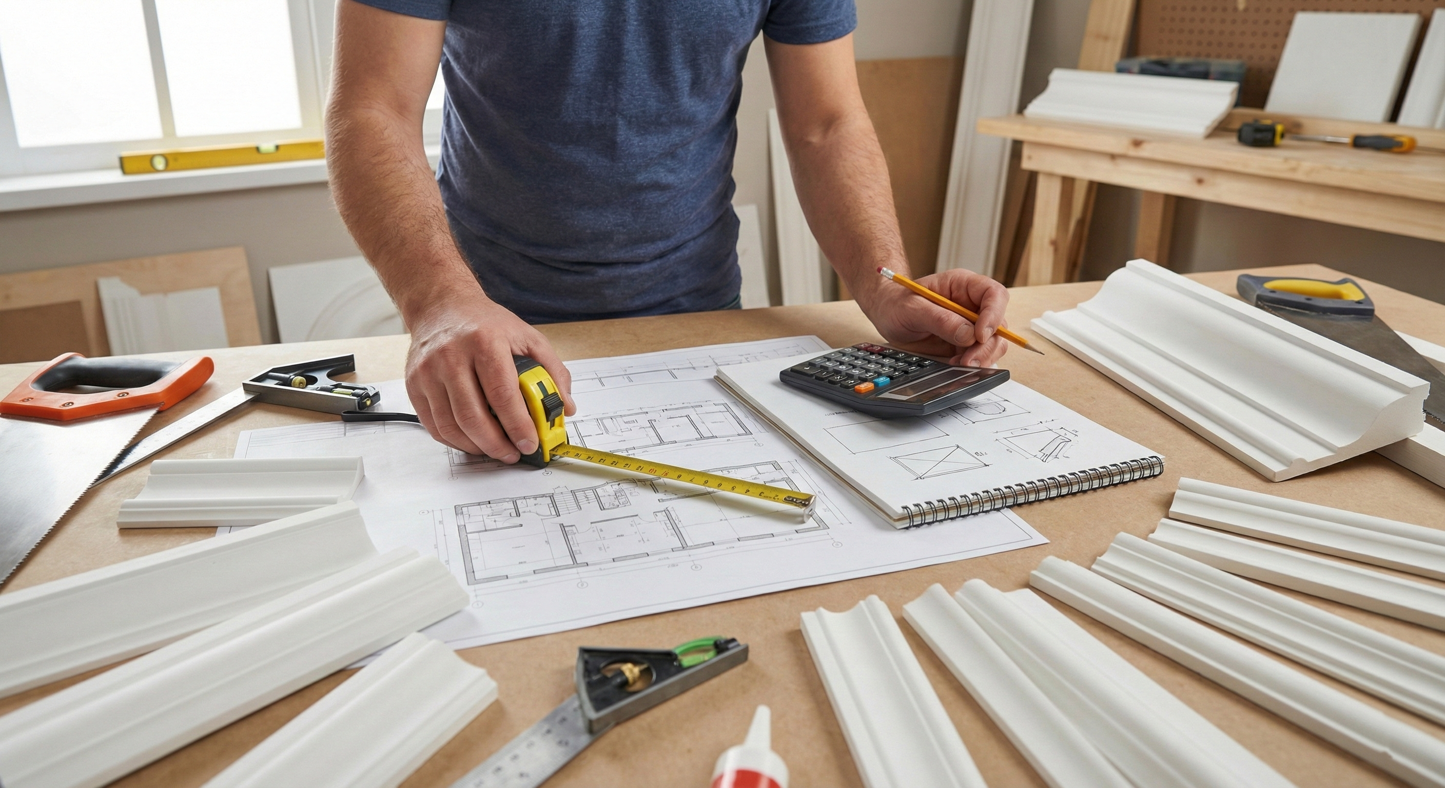 - Calculating linear products: moldings, cornices, baseboards