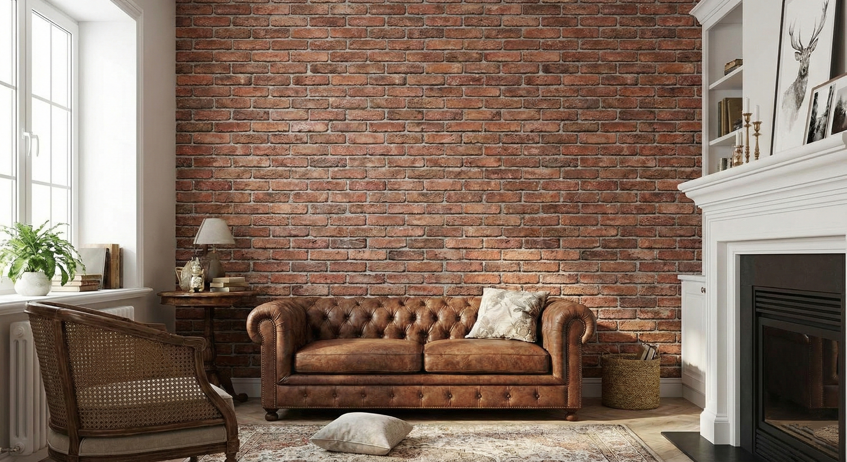 Современный массовый интерьер глянцевый — гладкие окрашенные стены, ламинат, мебель из ИКЕА, синтетические ткани. Пространство функционально, гигиенично, но лишено материальности — все поверхности имитируют (ламинат имитирует дерево, обои имитируют ткань, панели МДФ имитируют камень). Кирпичная кладка — антитеза имитации. Кирпич материален — фактура грубая, тактильная, честная. Даже полиуретановая имитация кирпича психологически воспринимается как более аутентичная, чем гладкая крашеная стена — рельеф создает тени, объем, визуальную сложность.