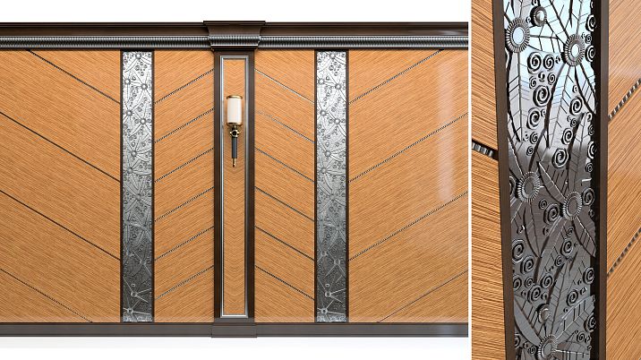 Creating panels usingdecorative shaped veneers is a trend actively used in modern design.