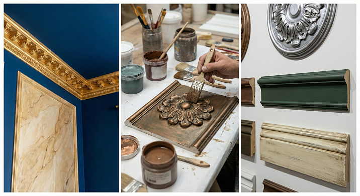 Solid color painting is just the basic level. The real magic begins when decorative techniques are used that give the molding depth, volume, and history.