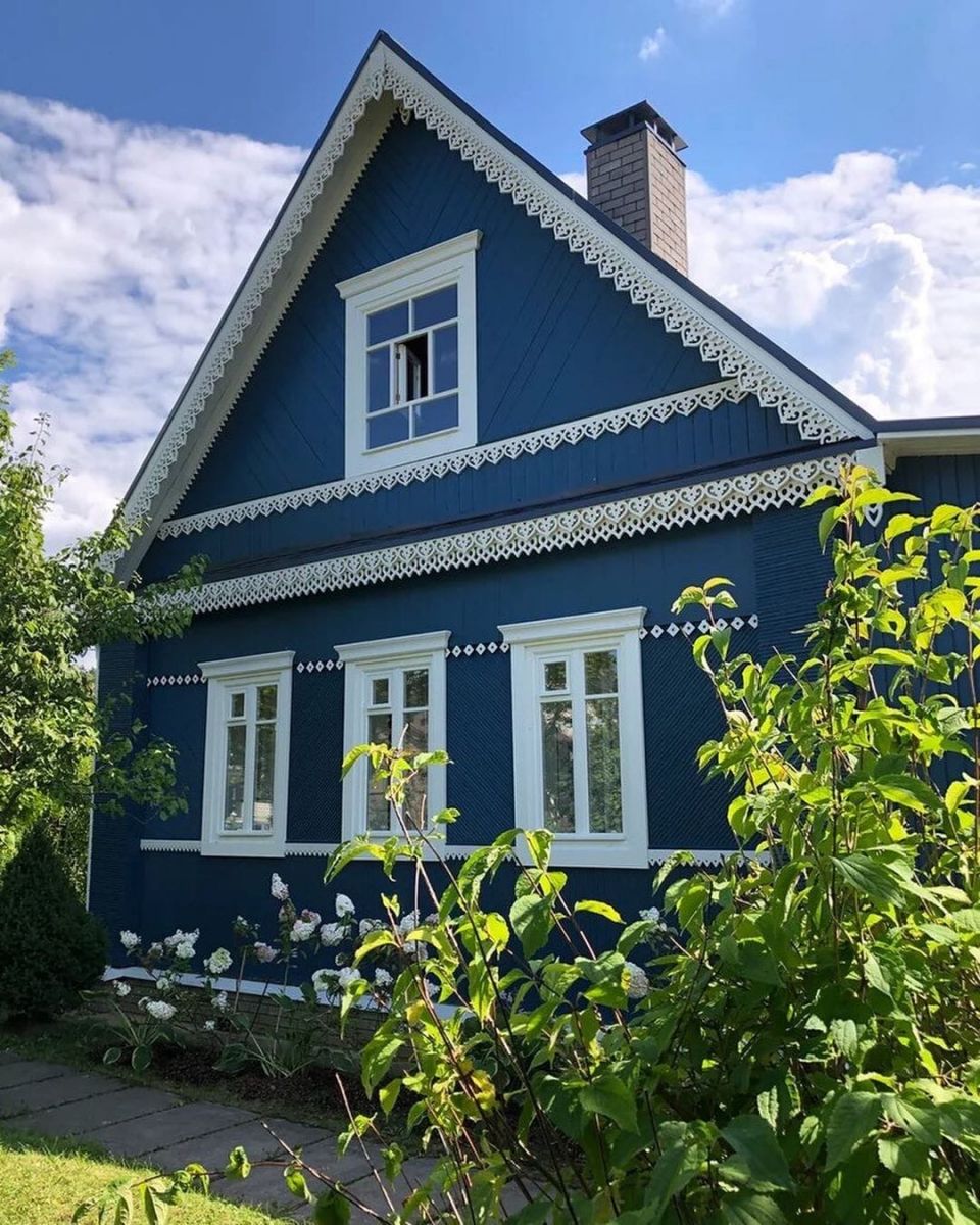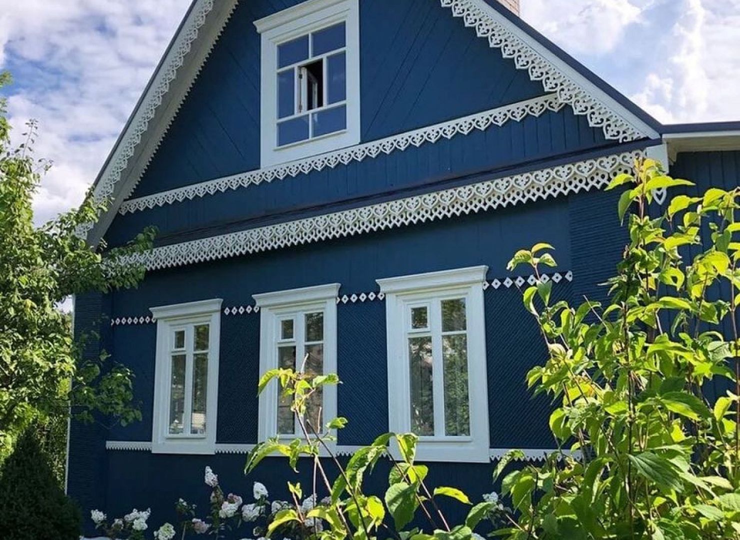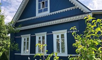 The architect, Eva Korbakova, chose a design in the spirit of Russian North. Since the house had already turned 40 years old, the task for the project participants was restoration. On one hand, it was necessary to refresh the building's exterior, and on the other - to preserve its uniqueness and not harm it. The wooden cladding of the facade was left intact, carefully removing all paint from it. The roof was completely reworked, windows were replaced, and old decor was dismantled. Using classic elements of house carving, we decorated the roof gable and added 'carved lace' to the external facade walls. We used our standard moldings and decorative appliqués, made from pine.