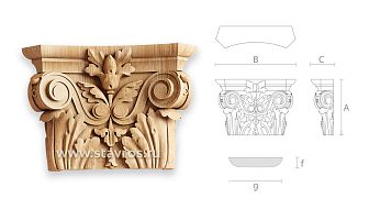 Carved capital KL-001.02 — a variant of capital KL-001. Its distinguishing feature is that it connects with pilasters PLM-14 - PLM-19. Carved capital KL-001.02 — a convenient and popular model for decorating portals, doors, furniture, and interiors.
