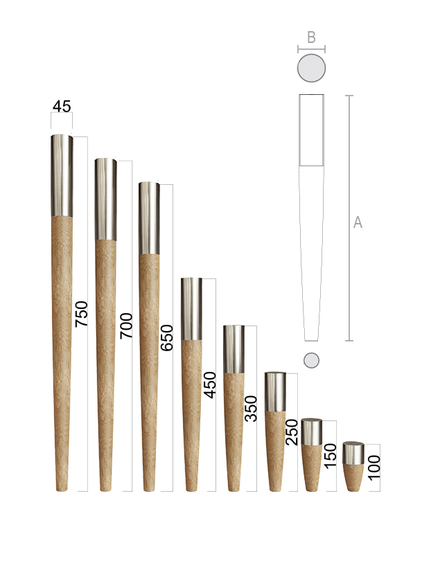 The Stavros furniture leg assortment includes more than 100 models, and we are constantly developing new design options. Conical legs with metal decoration are now available for order not only in "brass" finish, but also in "stainless steel" color.