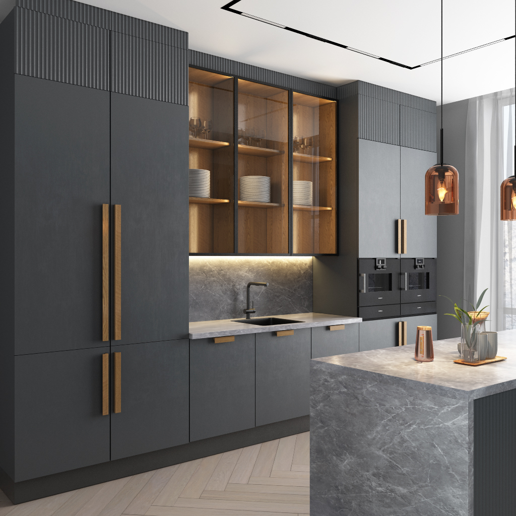 The sleek rectangular shape combines beautifully with modern fronts, glossy and textured surfaces, glass, and metal. The wide range of sizes allows using the handles for various interior items, from small side tables to tall cabinets.