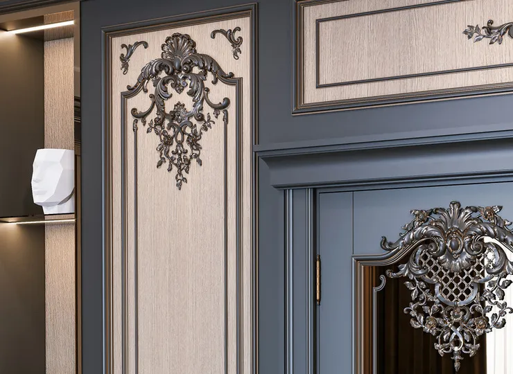 central and mirror corner veneers for creating compositions and standalone decorative accents.