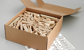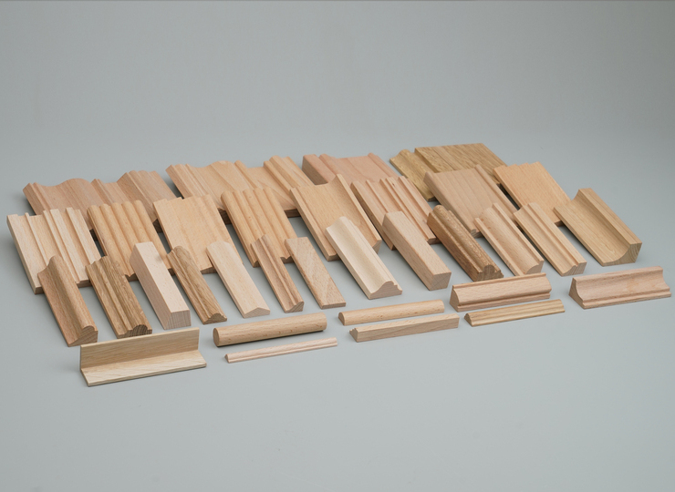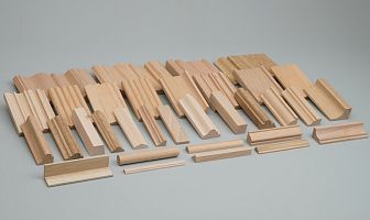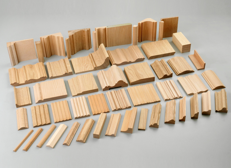 The set includes 69 modern profiles made of beech and oak wood with minimalist geometric shapes. Samples will help visualize ideas and select optimal profiles for decorating walls, ceilings, doors, and furniture.
