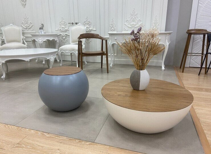Pedestals can be painted with enamels of any color and paired with tabletops made of wood, glass, metal, and other materials.