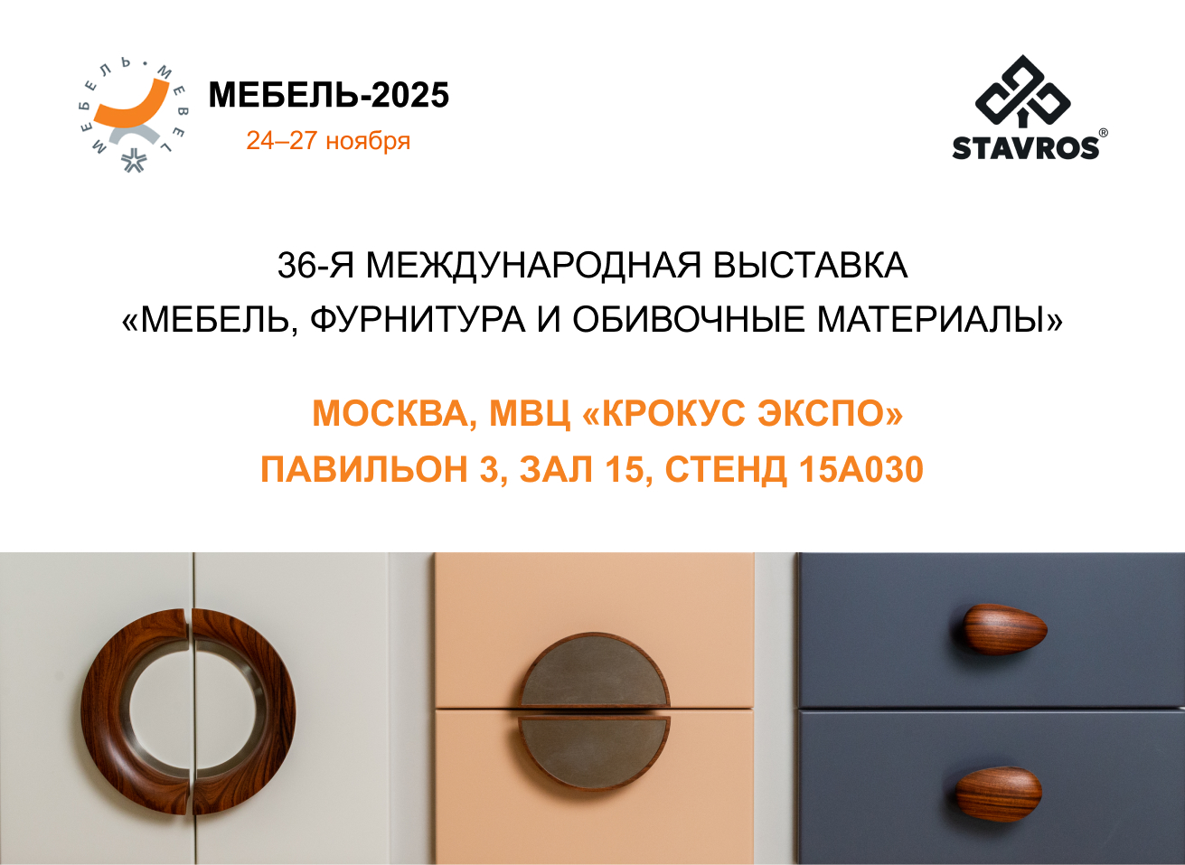 From November 24 to 27, 2025 STAVROS will participate in the largest industry event in the Russian and Eastern European furniture market — the 36th International Exhibition "Furniture, Hardware and Upholstery Materials — FURNITURE-2025".