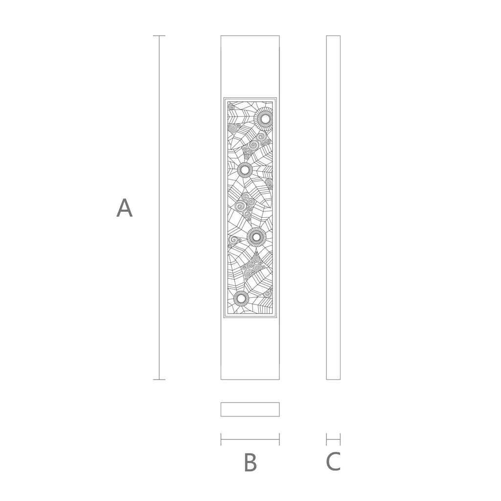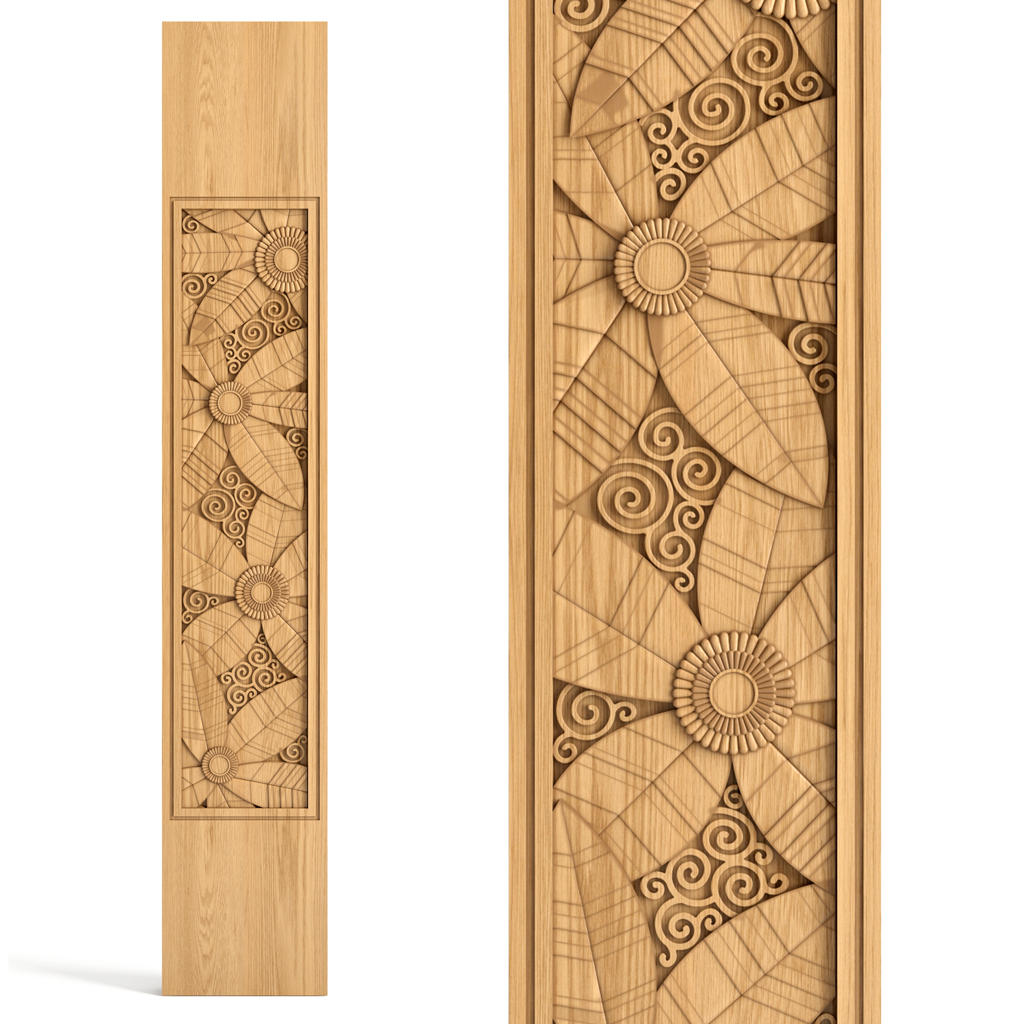 Flat newel post L-096.1 is a wooden post used to support stair railings. It has a rectangular shape and a carved surface that creates a unique Art Deco pattern. This style is characterized by geometric forms, symmetry, contrast, and elegance. The flat wooden newel post L-096.1 perfectly fits this style and adds elegance and luxury to the staircase.