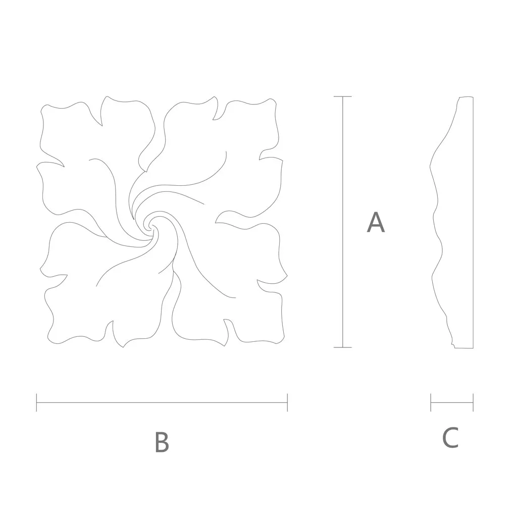 Carved wooden rosettes, such as R-061, are produced from high-quality materials. Choosing between oak and beech allows this element to be adapted to any interior, taking into account both aesthetic and practical preferences of the client. Oak is known for its strength and durability, making it an ideal choice for elements subjected to heavy use. Beech, on the other hand, is valued for its smoothness and fine texture, providing an excellent base for delicate and detailed carving.