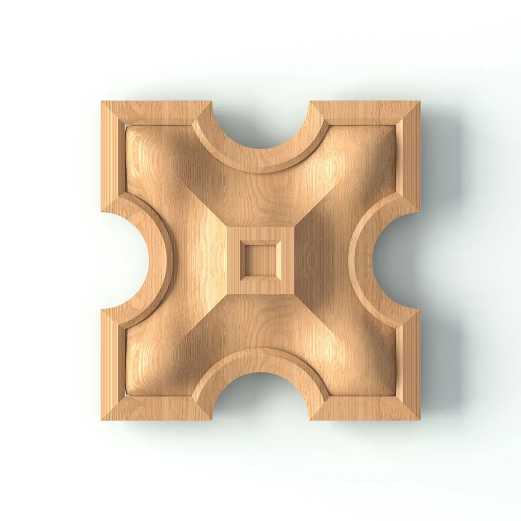 Carved Rosette R-065 — a gothic element in the form of a four-leaf clover. Used on facades, panels, doors, wall panels, beds, nightstands, wardrobes, cabinets, arches, columns. Thanks to its simple, elegant form, the item can be combined with other styles and integrated into modern projects. Wooden rosettes R-065 are available in an optimal quantity of standard sizes, allowing one model to be used for different tasks within a single project.