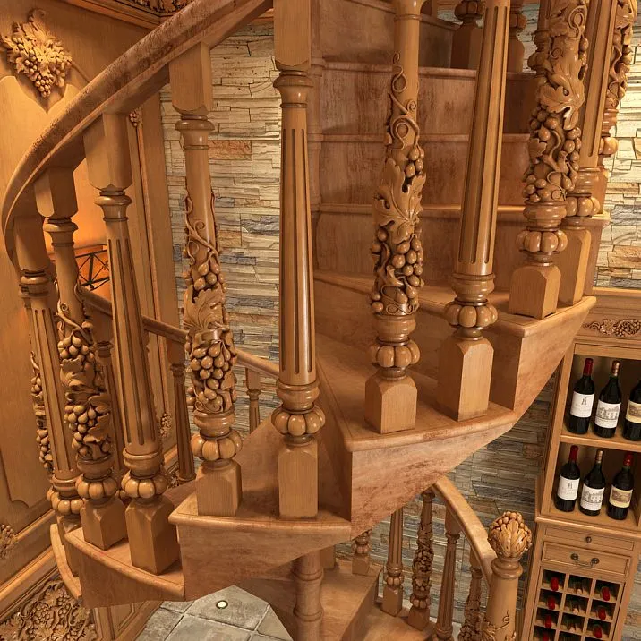 This wooden baluster is based on our L-060 model, but unlike it, it is generously adorned with rich carved decoration in the form of grapevine. The leaves and grape clusters winding around the baluster are meticulously crafted and look very natural. Baluster models L-059 and L-060 will look great together and will give your wine cellar staircase a truly luxurious and prestigious appearance. We also recommend pairing these balusters with landing posts L-061.