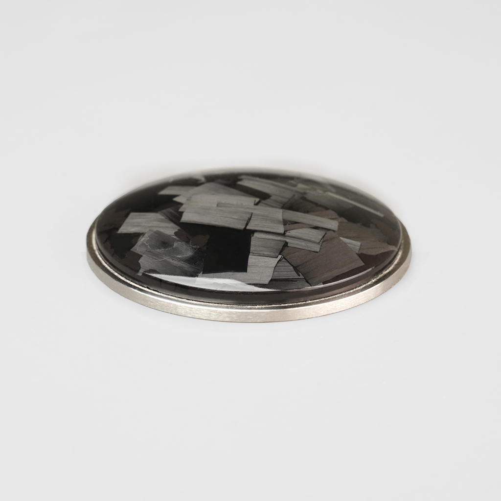 The insert dimensions are 74 × 74 × 13 × 32 mm, ensuring an optimal combination of ergonomics and visual expressiveness. The round shape with a 74 mm diameter provides sufficient area for a comfortable grip without overloading the furniture facade. The 13 mm thickness guarantees the necessary structural strength, and the 32 mm seating depth ensures reliable fixation in the furniture handle body.
