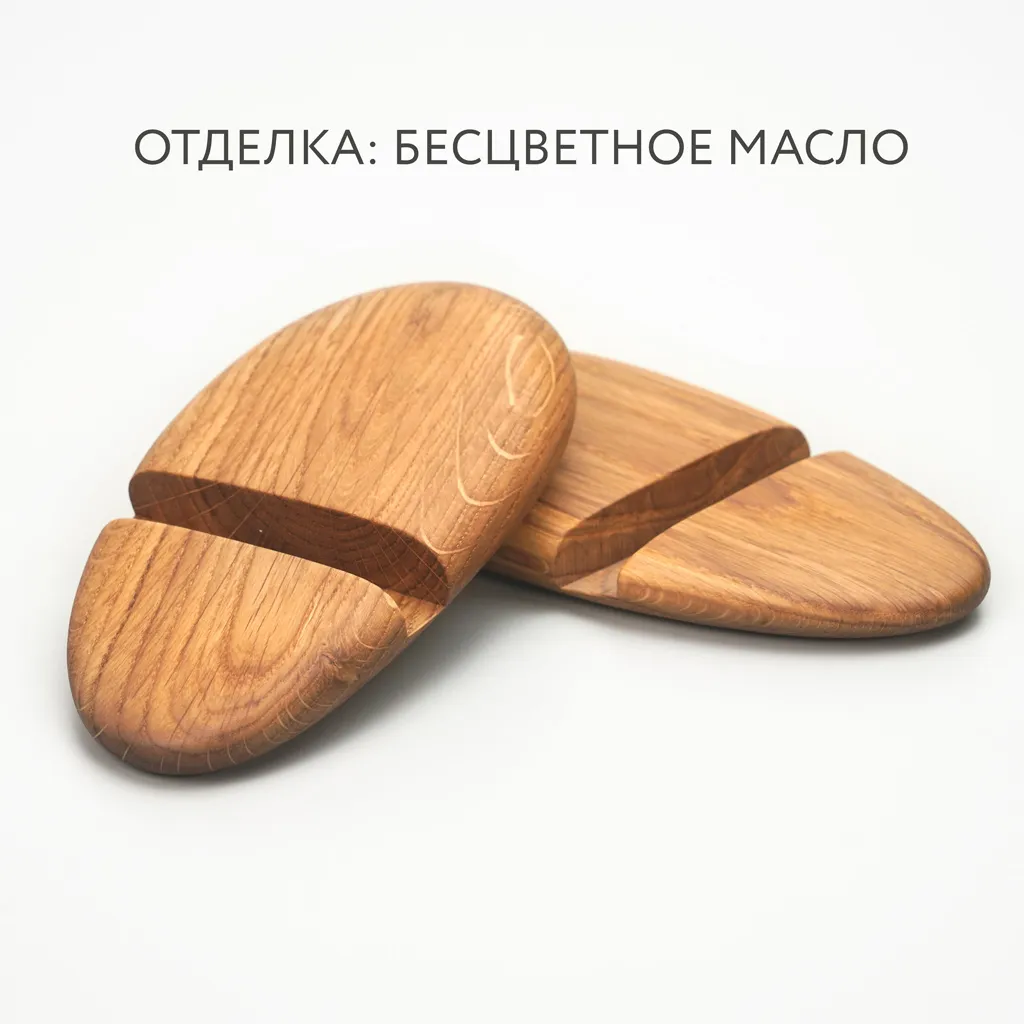The stand features a 13 mm wide slanted slot for phone placement. Made from solid blocks of beech, oak, and ash, it is finished with colorless oil.