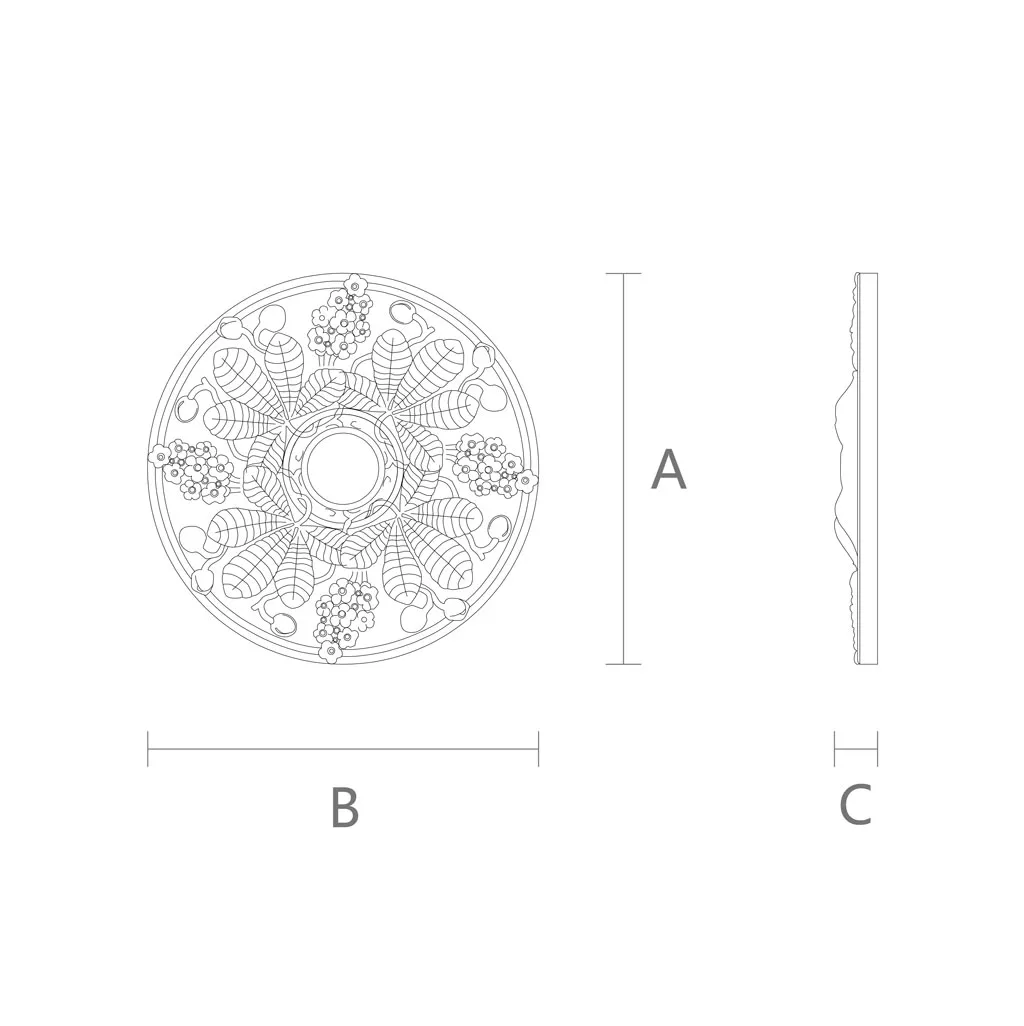 The decorative rosette R-007 with chestnut leaves and flowers is designed in the modern style. Unusual and eye-catching, with delicate pattern detailing — such decoration will fit organically into projects with rich classical carving and modern interiors. Carved rosettes R-007 are suitable for coffered ceilings, door panels, fireplaces, and facades. Thanks to the optimal range of standard sizes based on a single model, you can create various interesting furniture items in a unified style.