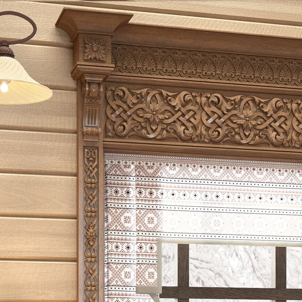 Carved Molding K-064 "Palmette" often becomes an ornament of church-oriented objects. In architectural structures of different eras, this pattern appears as a frieze or part of its structure, as well as in capitals, brackets, and as applied elements on building facades. The molding integrates beautifully into everyday projects, both as a standalone decoration and as an addition to "palmette" pattern carving. Wooden frieze K-064 can be confidently combined with ethnic and Byzantine styles. Its complex and multifaceted pattern features flowers and crowns. With various combinations, one can create interesting and unique projects.