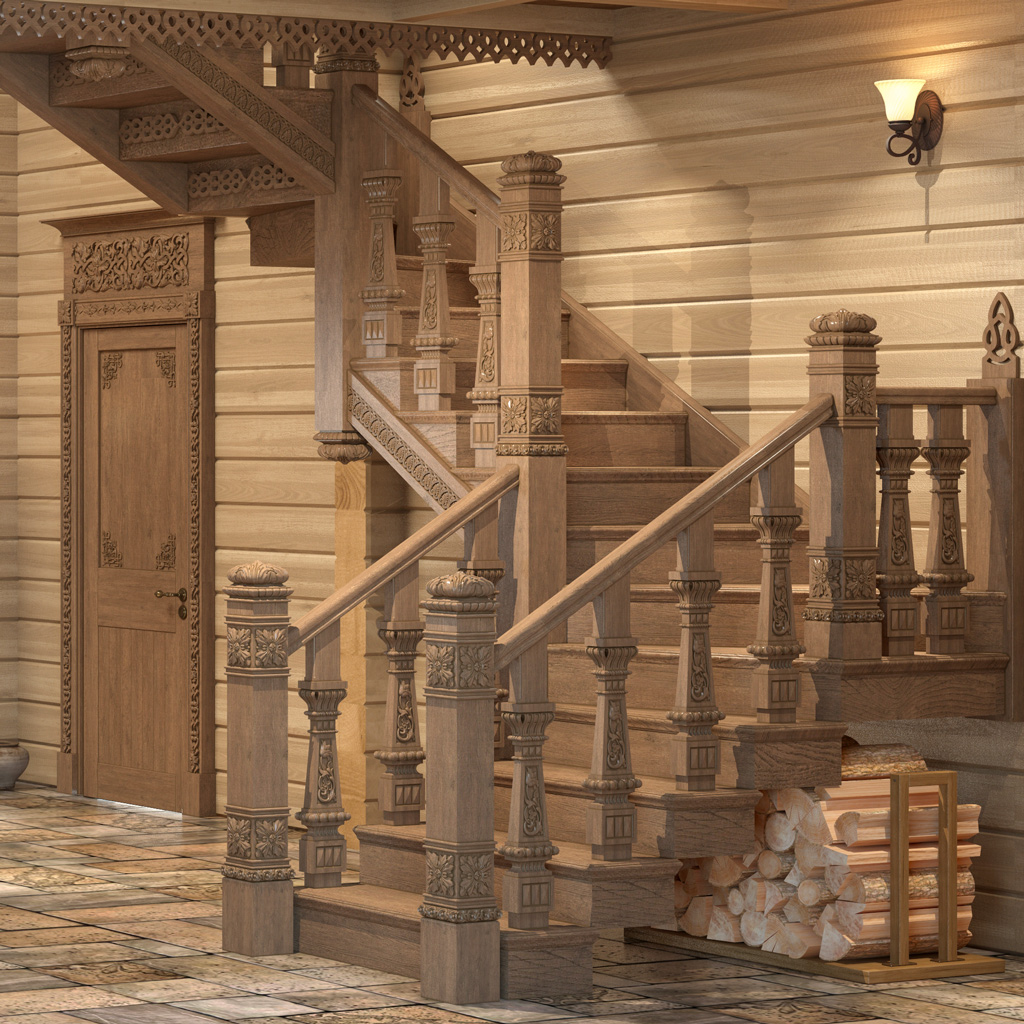 ● The wooden stair baluster L-009.1 will perfectly fit into any interior, but especially harmoniously it will match the Russian style, characterized by folk charm, warmth, and coziness. The wooden stair baluster L-009.1 will create an atmosphere of a home hearth and hospitality in your home, and also highlight your love for your homeland and traditions. The wooden stair baluster L-009.1 will perfectly match with the posts L-009, which have a similar design and color.