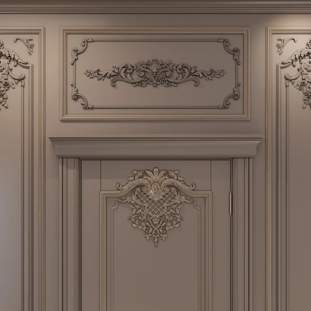 Relief Decoration On doors, it adds volume and elegance. This is an ideal way to make even standard door structures resemble works of art. Especially relevant for interiors styled in Baroque, Classicism, and Empire.