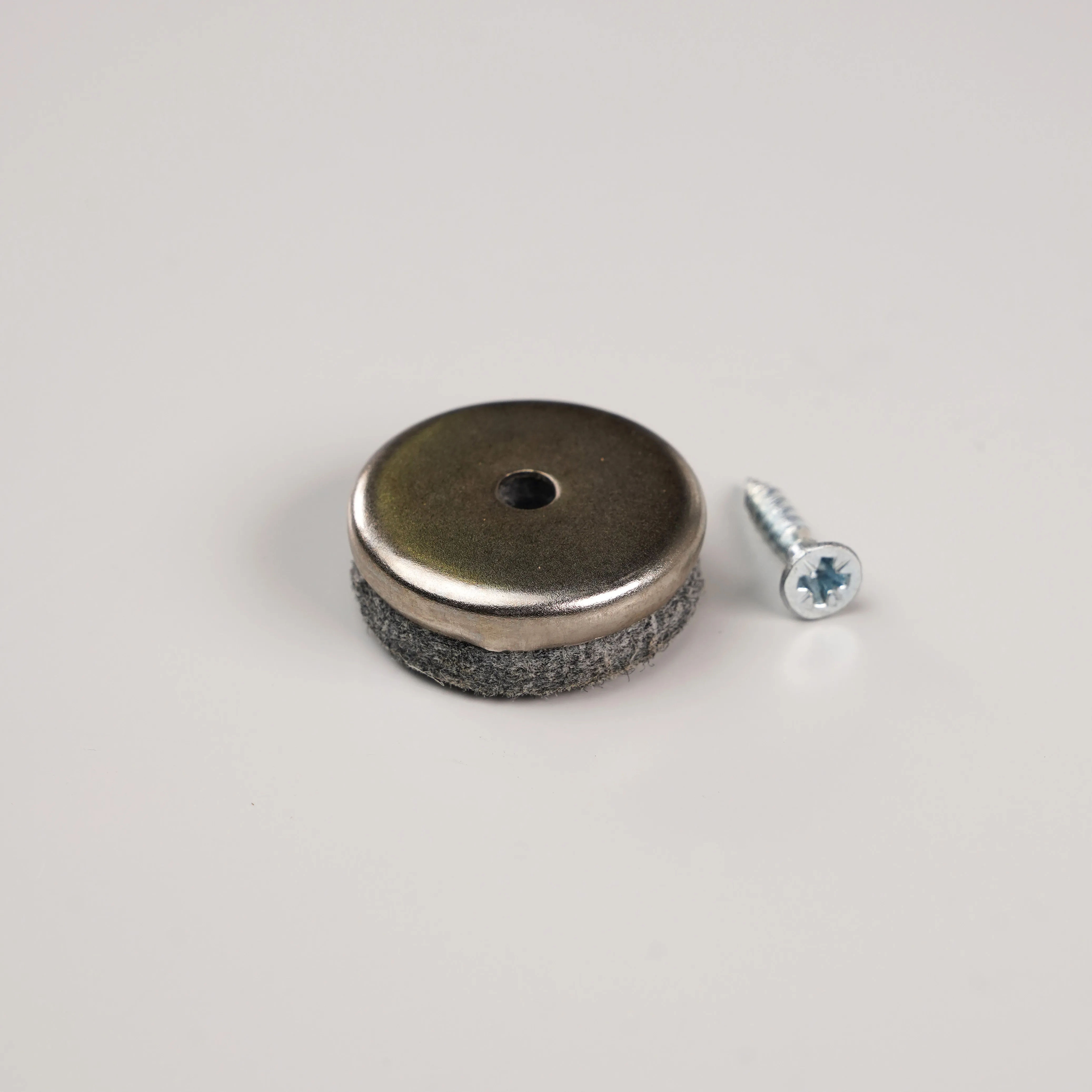 Felt furniture leg pad, d=24 mm, chrome color. Supplied with universal screw 3.5 * 20