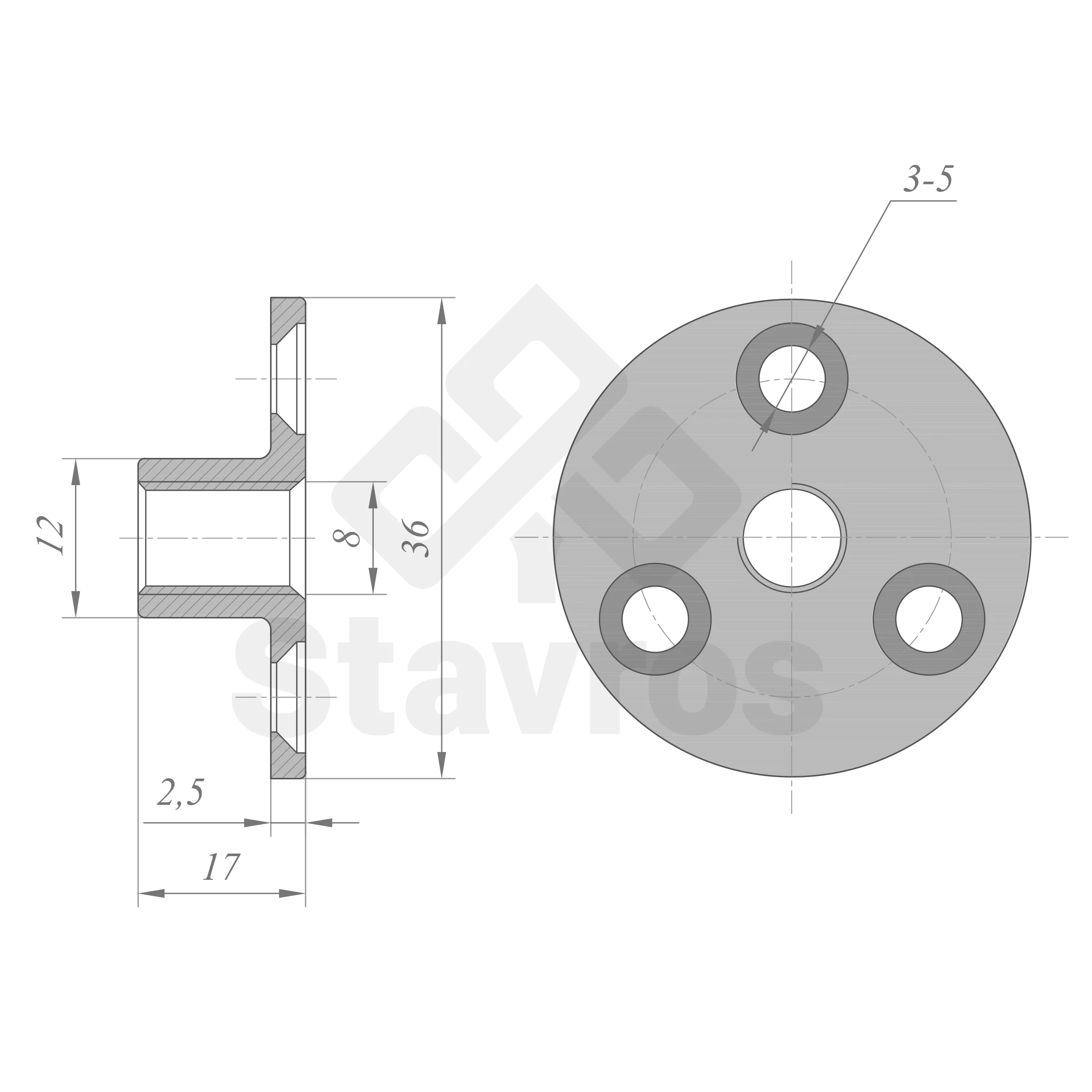 Mounting plate included in the set has a diameter of 37 mm and internal M8 thread. It is made of high-quality metal, ensuring its strength and durability. The plate is designed for even load distribution, providing stable and secure leg mounting.