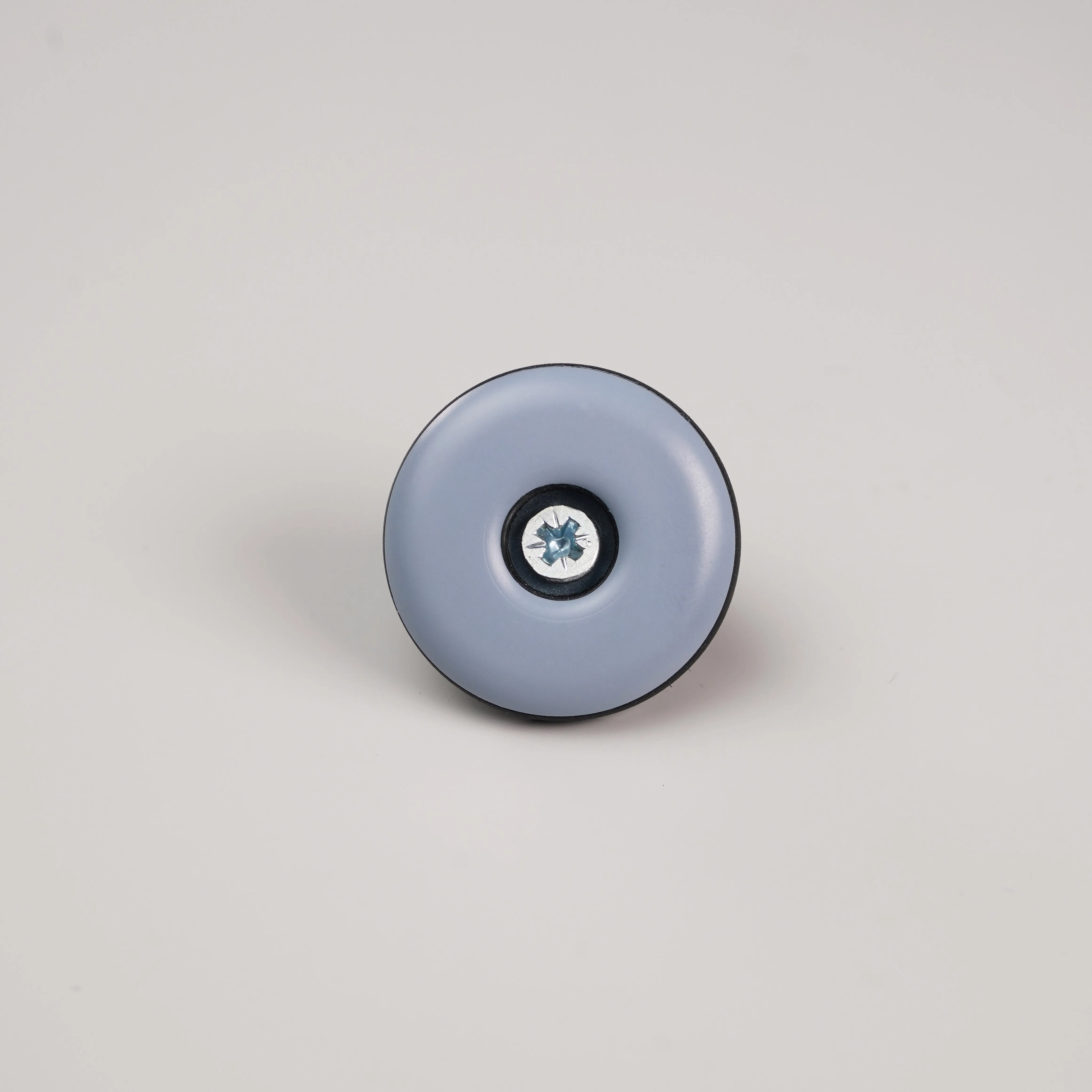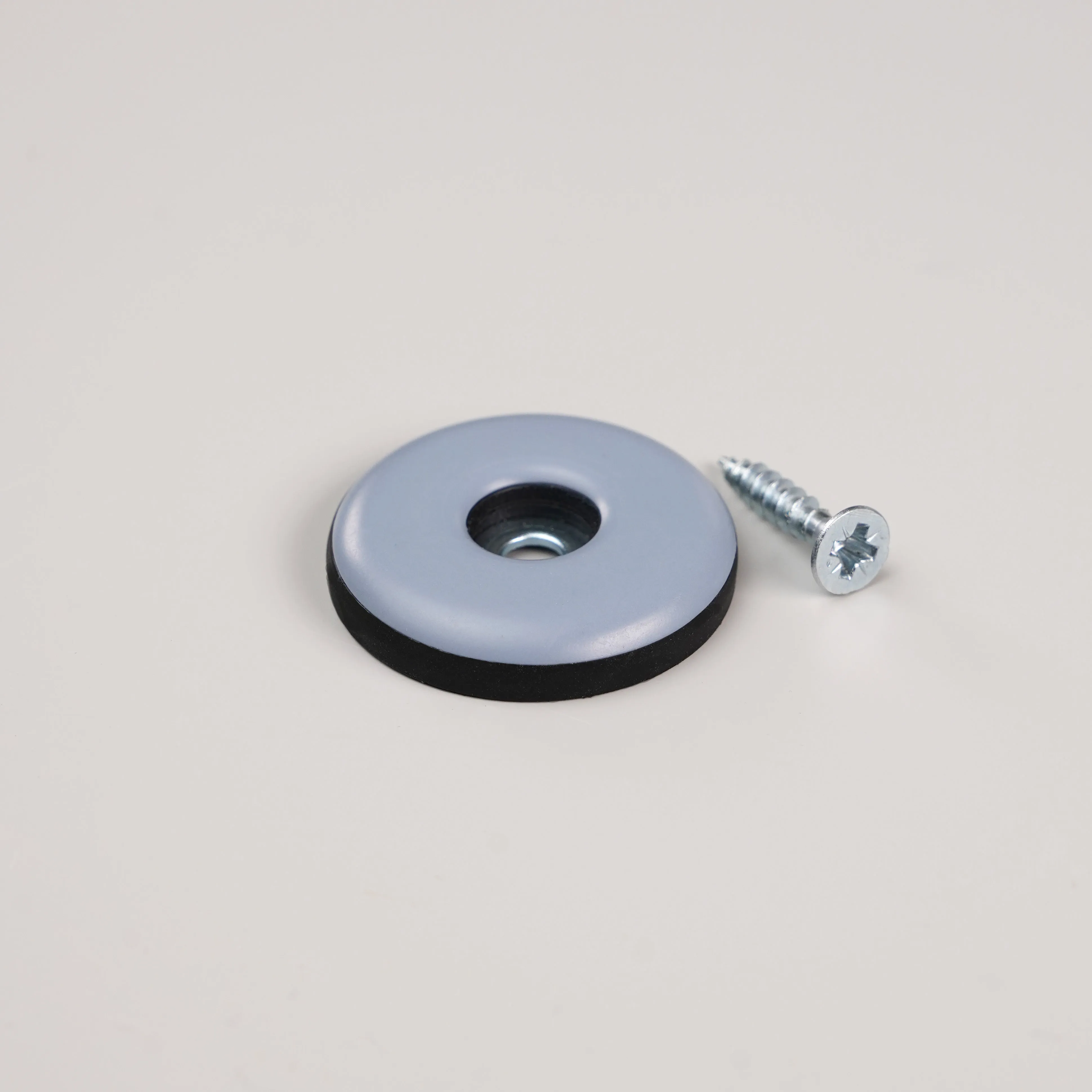 FUR-022 round washer D30 mm, for screw. Supplied with universal galvanized screw 3.5x20 (countersunk head, cross recess). This is a SUPER GLIDE series washer, thanks to its shape and special sliding coating, it allows easy movement of heavy structures without damaging the floor surface.