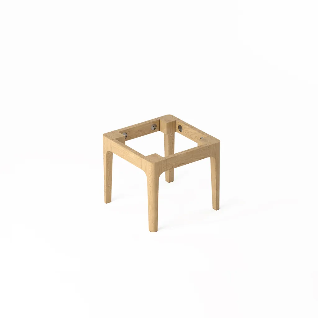 Каркас банкетки STL-026-10 имеет квадратную форму, которая подходит для любого размера и формы сиденья. Каркас состоит из четырех ножек, соединенных царгами, и двух боковых панелей.