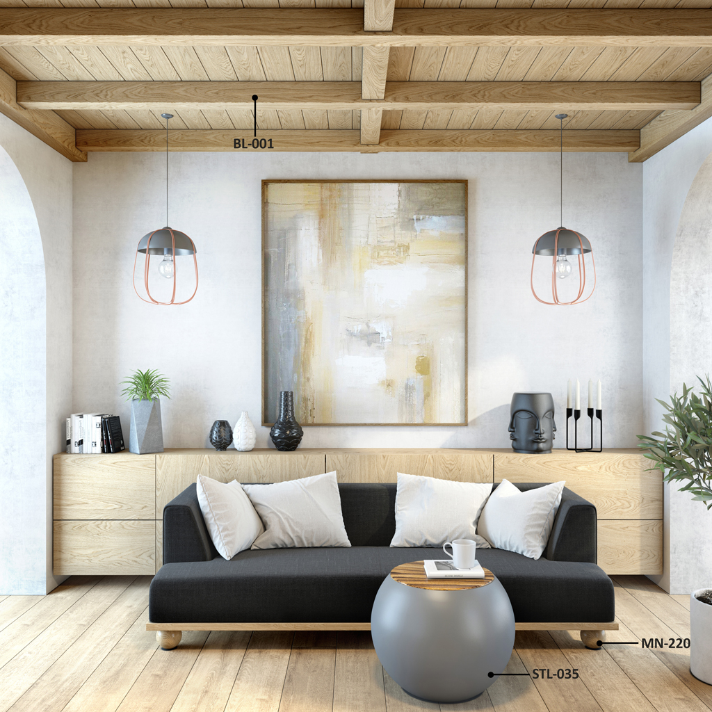 В жилых интерьерах подстолье идеально подходит для гостиных, где журнальный столик служит центральным элементом зоны отдыха. Сферическая форма с рифленой фактурой создает выразительный акцент и привлекает внимание, не перегружая при этом интерьер.