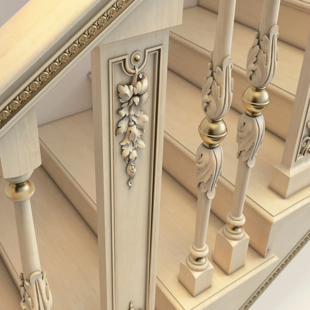 ● Она имеет оригинальный и изящный дизайн, который подчеркивает резьбу по дереву. Она создает эффект объема и глубины, придавая лестнице изысканность и роскошь.