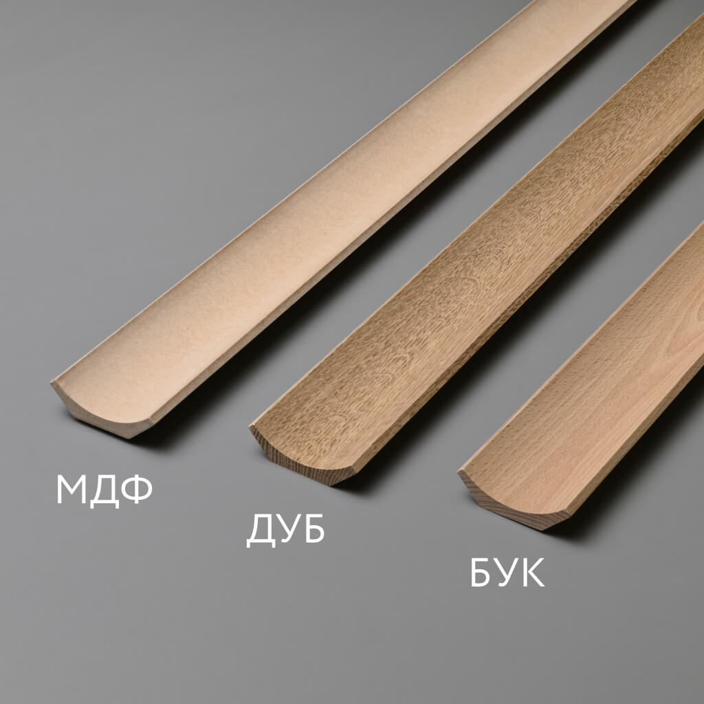 Для классических интерьеров — дуб, для универсального применения — бук, для современных решений с эмалями — МДФ.