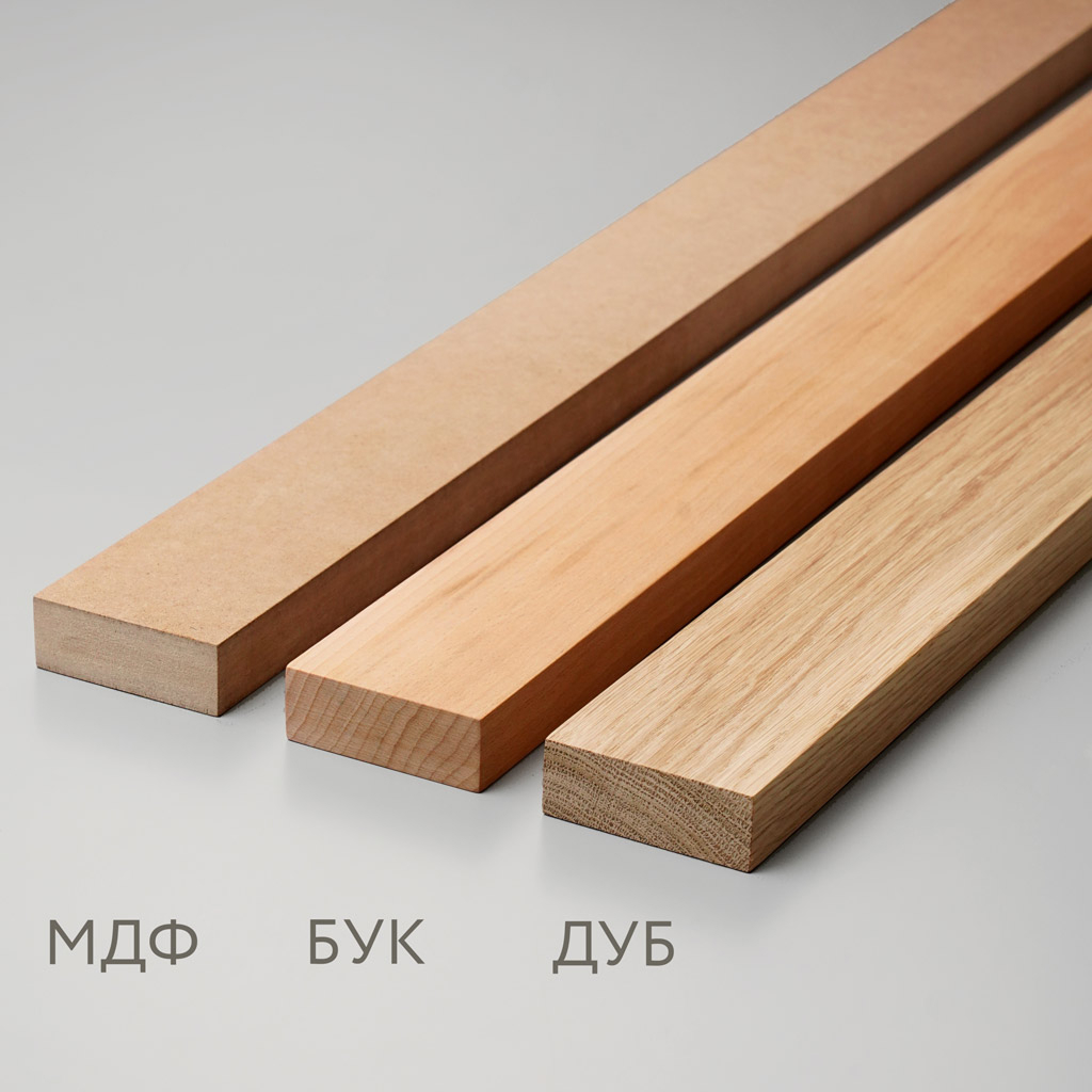 Молдинг из бука характеризуется плотной однородной структурой (700-780 кг/м³) и превосходными технологическими свойствами для габаритных архитектурных профилей. Мелкопористая текстура идеально воспринимает широкий спектр отделочных материалов от торжественных лаков до монументальных эмалей. Равномерная структура волокон обеспечивает однородность окрашивания по всей длине габаритной профильной планки.