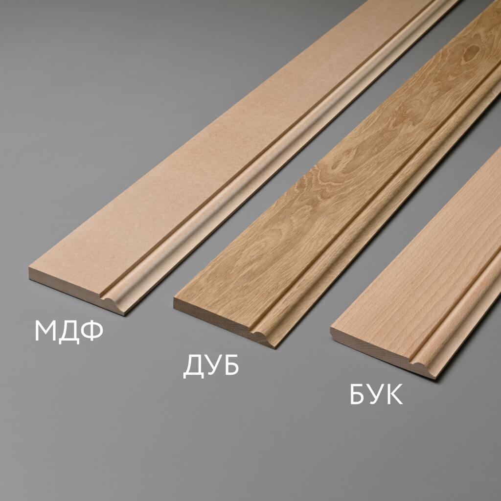 Для элитных интерьеров — дуб, для классического применения — бук, для современных решений под эмаль — МДФ, для влажных помещений — МДФ влагостойкий.