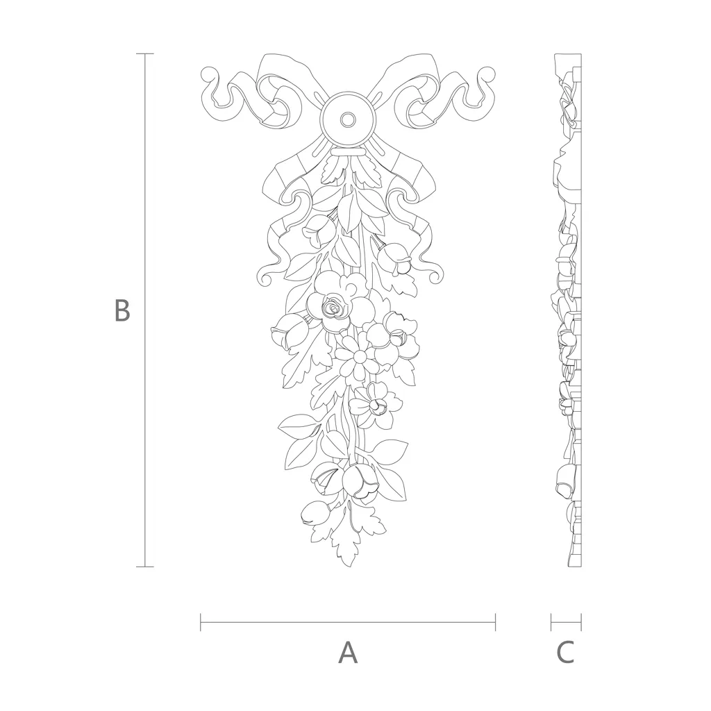 Резная накладка N-042 из дерева - это одна из моделей резной накладки, которая отличается своей оригинальностью и гармонией. Она выполнена из массива дуба или бука - двух самых ценных и качественных пород дерева. Дуб и бук обладают высокой прочностью и долговечностью, что позволяет создавать детальные и тонкие резные узоры. Резная накладка N-042 из дерева имеет четыре размера, а также сложный и изящный рисунок, который состоит из двух частей: центральной и периферийной.