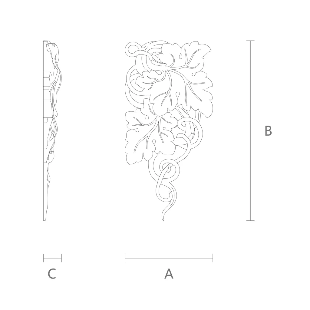 Деревянная резная накладка NN-252R отличается от других деревянных изделий своей резьбой. Резьба выполнена мастерами мастерской деревянных изделий Stavros. Они владеют искусством резьбы по дереву и создают неповторимые узоры. Резьба на накладке имеет вид виноградных гроздей и листьев. Это символизирует плодородие, изобилие и радость. Виноград - один из самых древних и почитаемых культурных растений, который ассоциируется с виноделием, праздниками и богатством. Листья винограда имеют сложную и красивую форму, которая придает накладке изящество и грацию. Резьба на накладке выполнена с высокой точностью и детализацией. Вы можете рассмотреть каждую ягоду, каждый лист и каждую ветвь. Резьба на накладке создает объемный и рельефный эффект, который придает накладке живость и динамику.