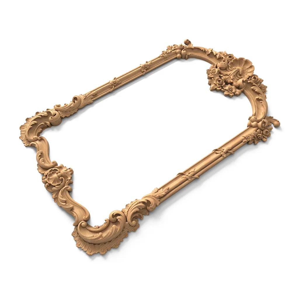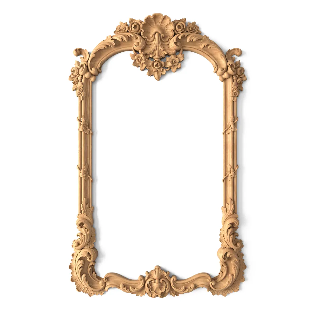 Резные рамы для зеркал из дерева RM-002 подходят для различных типов интерьеров, от классических до современных. Их можно интегрировать в любую комнату дома или офиса, будь то в качестве основного акцента или как деликатное дополнение к общей стилистике.