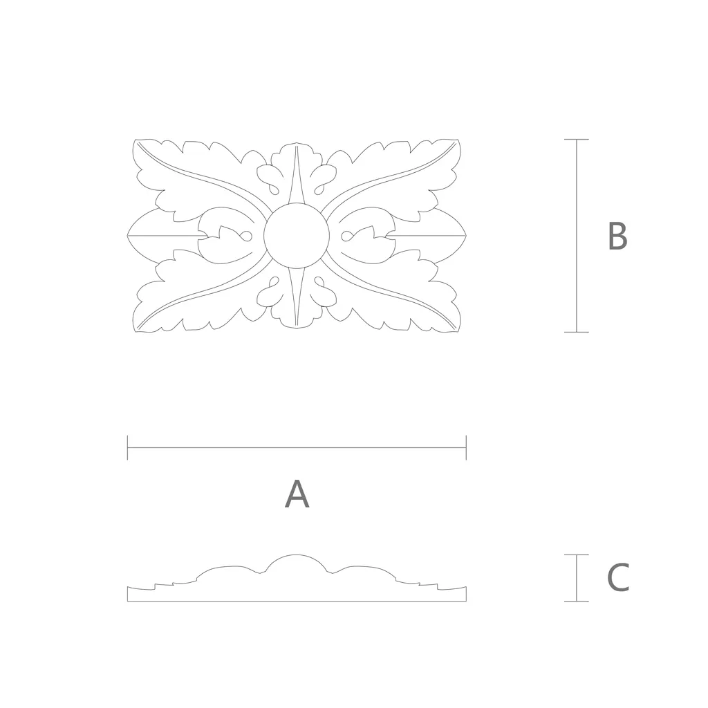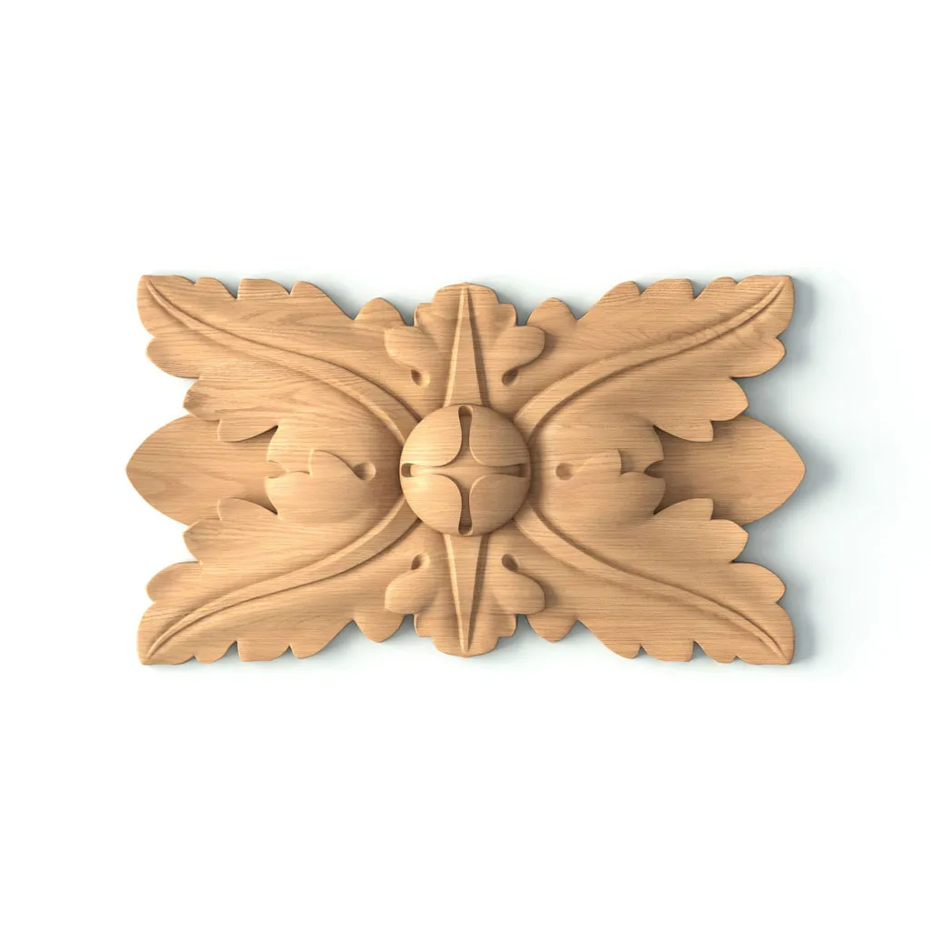 Резная розетка R-031 — это не просто украшение, а многофункциональный декоративный элемент, представляющий собой прямоугольную панель с акантовыми листьями и центральным бутоном. Её дизайн отличается глубокой резьбой и точными деталями, что делает каждую розетку произведением искусства.