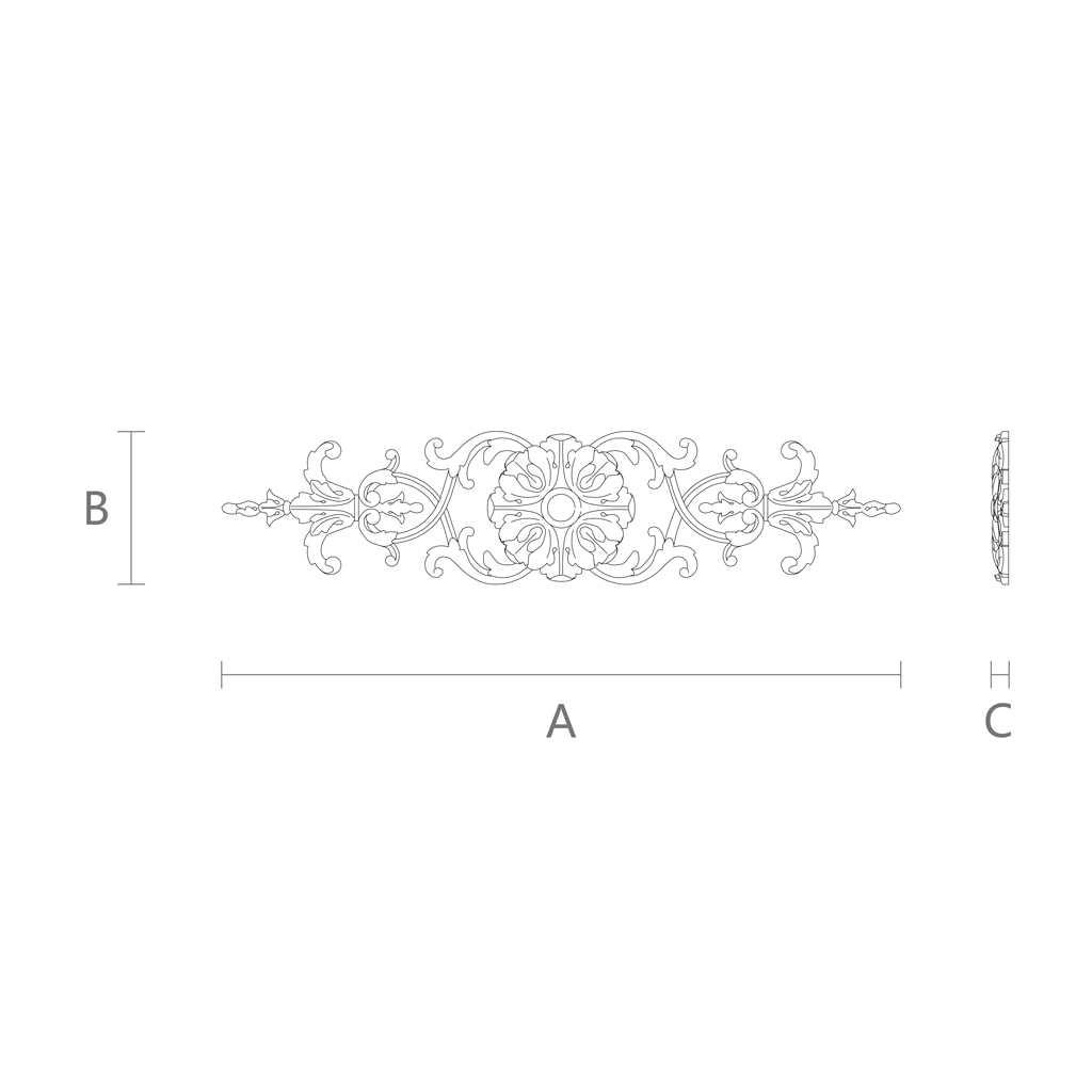 Технический декоративный элемент в трех размерах: 311х70х10 мм, 400х90х13 мм, 488х110х16 мм. Полиуретановая основа гарантирует влагостойкость, отсутствие деформаций и четкую передачу мельчайших деталей орнамента.