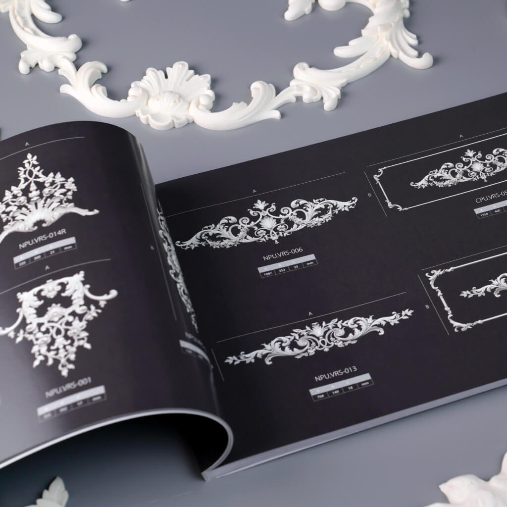 Печатный каталог полиуретанового декора STAVROS — 122 страницы вдохновения для вашего интерьера
