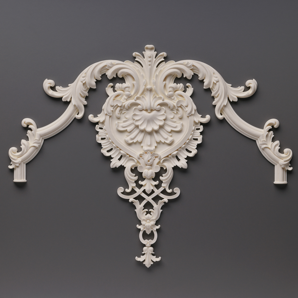 applique for furniture NPU-413 is made of high-quality polyurethane that perfectly imitates moldings and carvings, bringing chic and elegance to the interior. The combination of its dimensions 530x410x18 mm with its lightweight design makes installation simple and accessible to everyone. The material is easy to cut and adapts to various surfaces, allowing you to decorate furniture yourself and bring your most daring design fantasies to life.
