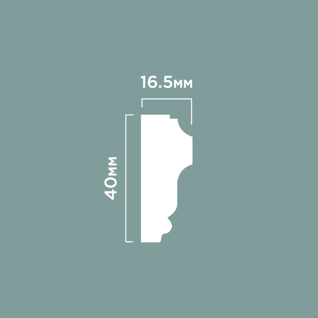Model D40V2 is a wall profile of classic shape with a height of 40 mm and an elegant multi-level relief, creating a striking play of light and shadow on the wall surface. The height of 40 mm is optimal for creating a noticeable decorative effect — the profile is sufficiently expressive to structure the space and attract attention, yet does not appear bulky even in medium-sized rooms. The thickness of the profile, 16.5 mm, ensures sufficient structural strength with minimal weight, facilitating installation and not creating load on walls.