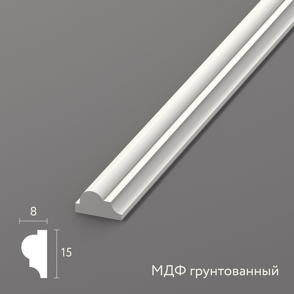 Optimal profile dimensions makeprimed molding MLD-004-MGa universal solution for a wide range of tasks. The 15 mm height provides sufficient visual expressiveness, allowing the molding to be a noticeable decorative element without excessive bulkiness. The 8 mm width ensures reliable adhesion to the surface and creates a sturdy mounting base. These proportions are ideal for medium-sized rooms, where it is necessary to emphasize architectural features of the space, create framed compositions on walls, or decorate furniture facades with a worthy degree of detail.