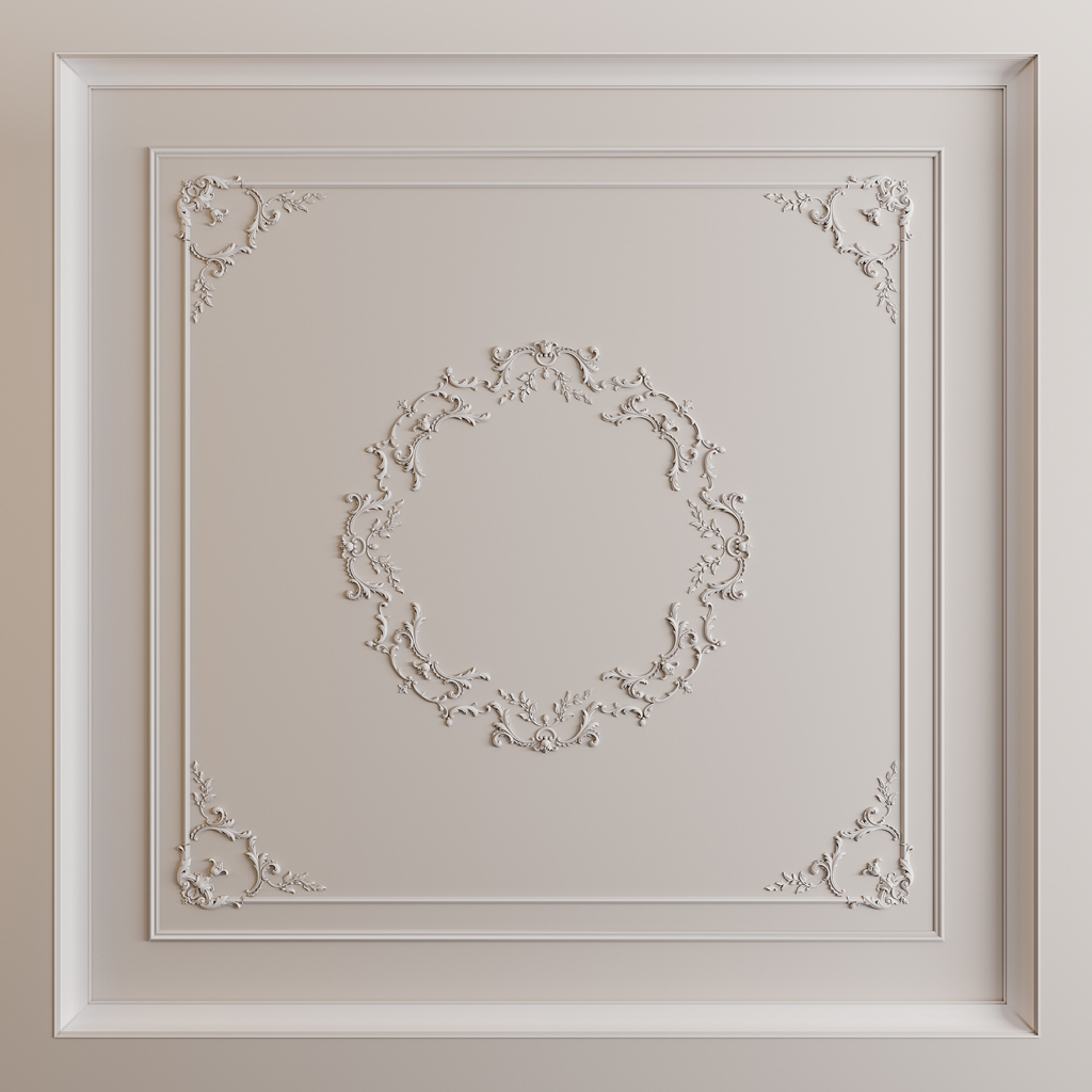 CPU-068 Molded Decoration is a refined work of decorative art, embodying the elegance of classical ornamental traditions in a modern interpretation using high-quality polyurethane. The composition’s dimensions of 1325 × 1325 × 18 mm make it an ideal solution for creating sophisticated interior accents in medium-sized rooms, where artistic expressiveness combines with harmonious proportions.