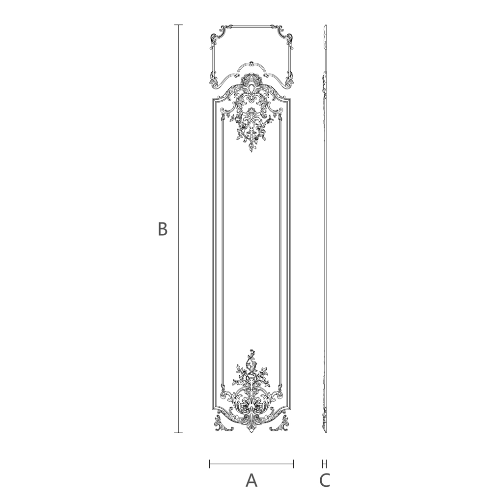CPU.VRS-056 Molded Decoration is a carefully designed set of elements that, when installed together, form a tall and elegant panel. Its height can reach over three meters, and its width is approximately 476 mm, allowing the set to be used as a striking accent in spacious rooms with high ceilings. However, even in small rooms, with proper placement, it can visually elongate the space vertically, making the interior more refined.