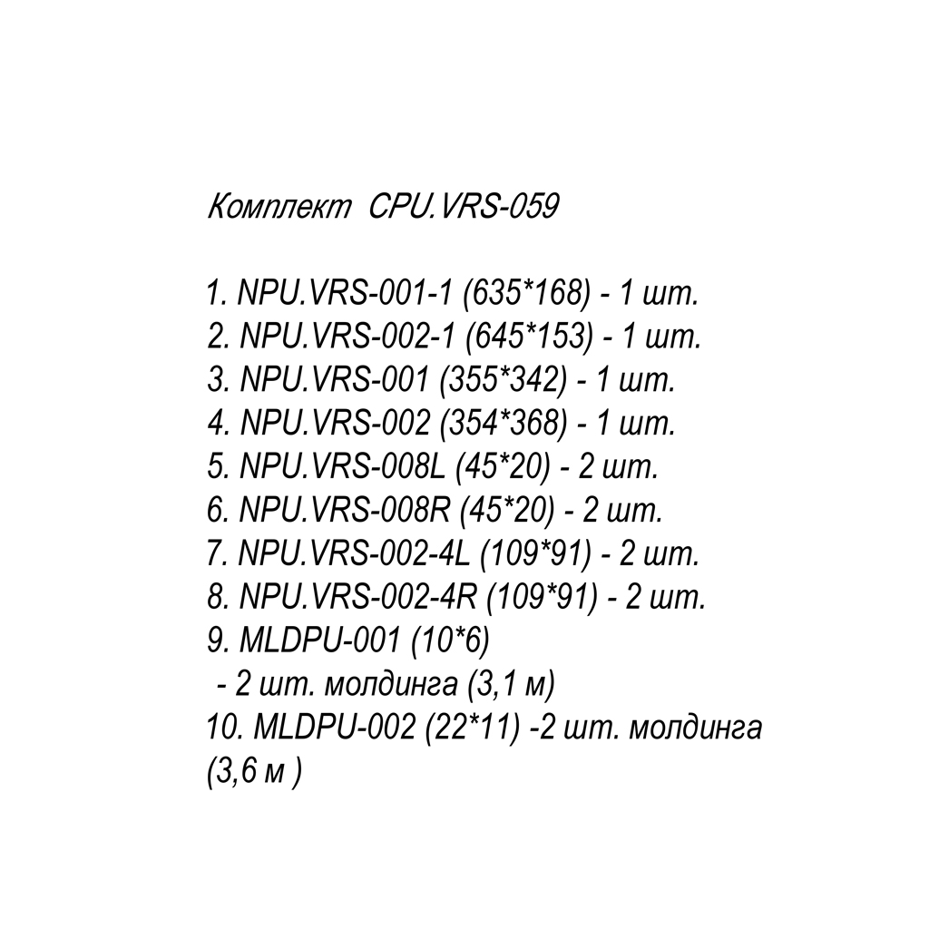 CPU.VRS-059 Molded Decoration is a set of decorative elements made from high-quality polyurethane. It consists of panels and appliqués combined into a single composition capable of transforming walls, doors, ceilings, and even facades. Thanks to its dimensions and refined design, CPU.VRS-059 serves not merely as a finishing element, but as a true work of decorative art.