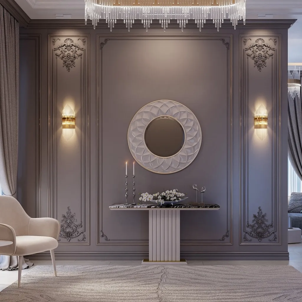 In a minimalist interior, CPU.VRS-059 can serve as a striking accent against monochromatic walls and simple furniture. In such a case, the decoration will not overload the space but rather add a distinctive touch. Choose a contrasting color — for example, white decoration on dark walls or vice versa — to highlight unique swirls and ornaments. Combining minimalism with classical elements allows creating an interesting and memorable design.