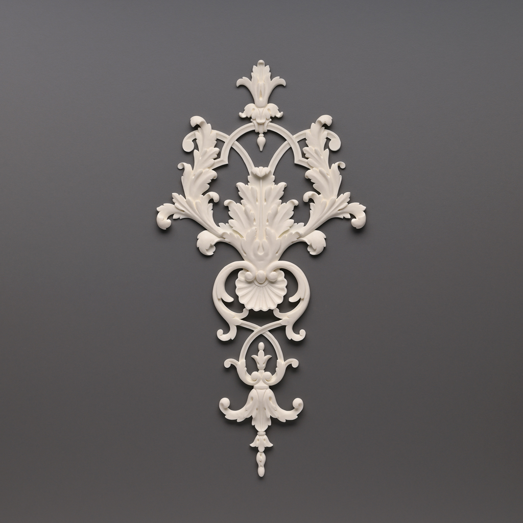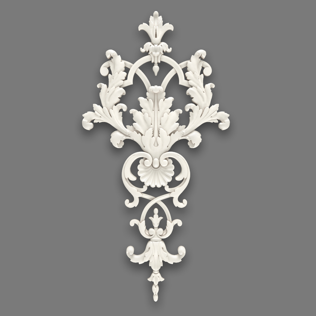 NPU-117 polyurethane overlay — a premium decorative element with highly detailed carved ornamentation. Made by precision molding, ensuring crisp lines and perfect contour geometry.