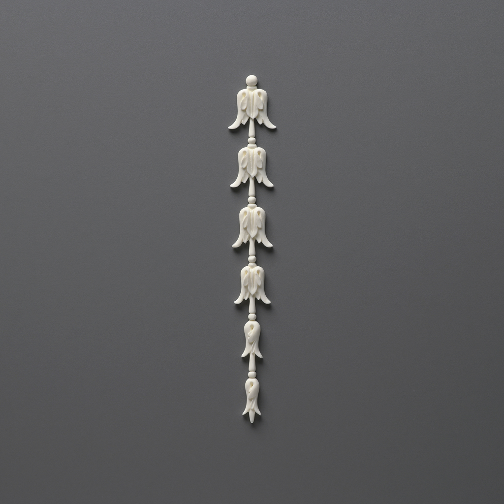NPU-316 Molded Decoration is a unique solution for those who wish to add elegance and expressiveness to their space. Its distinctive feature is a vertical composition resembling a garland of delicate flowers or stylized buds arranged sequentially. The item is made of high-quality polyurethane, ensuring lightness, durability, and wide application possibilities. Below is a detailed description of all aspects related to this decoration: from appearance and technical specifications to installation and care recommendations.