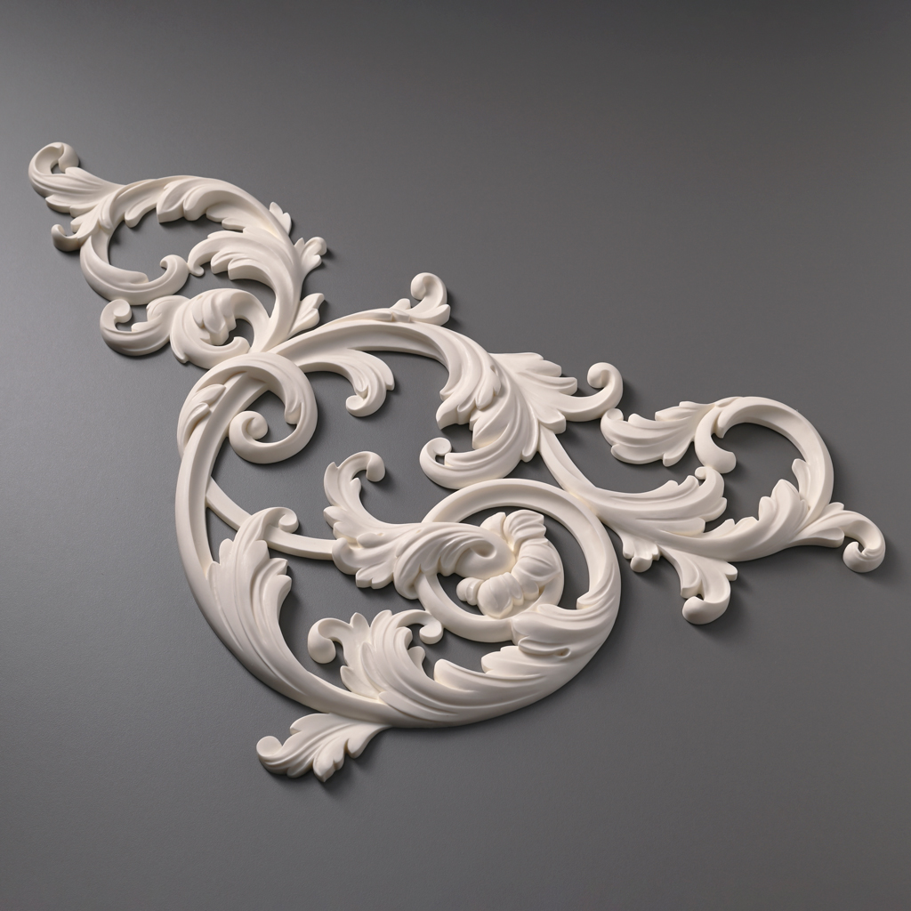 NPU-440L Molded Decoration is an eye-catching solution for those who appreciate bold, dynamic forms and wish to give their interior a unique character. There is no conventional symmetry here, but instead smooth lines that flow into one another and swirls reminiscent of fanciful botanical motifs. This kind of asymmetry creates a sense of movement and lightness, allowing the element to stand out even in the most luxurious interiors.