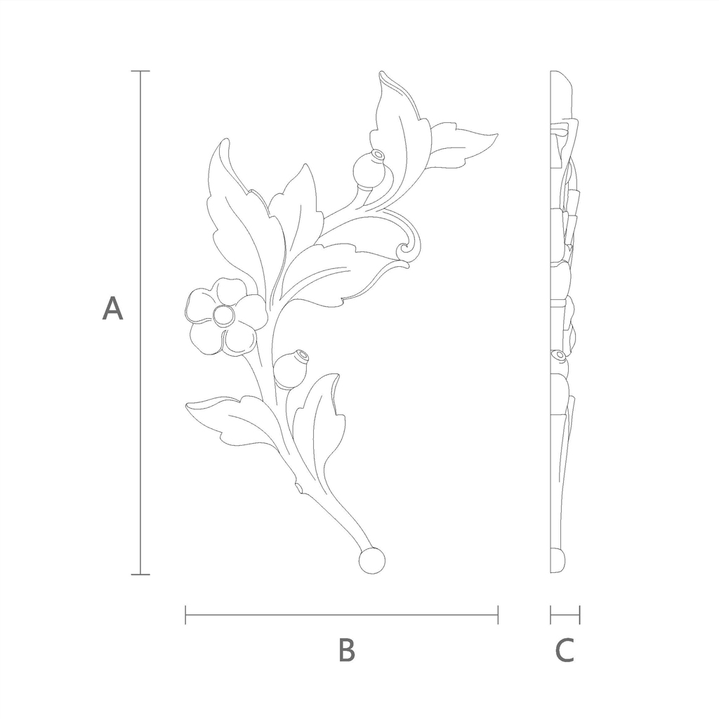 NPU-471L Molded Decoration is an elegant applique in the form of a branch with a flower and leaves. Such a motif looks universal and can fit almost any style — from classic to minimalism, from Provence to eclecticism. But what else attracts attention to this model?