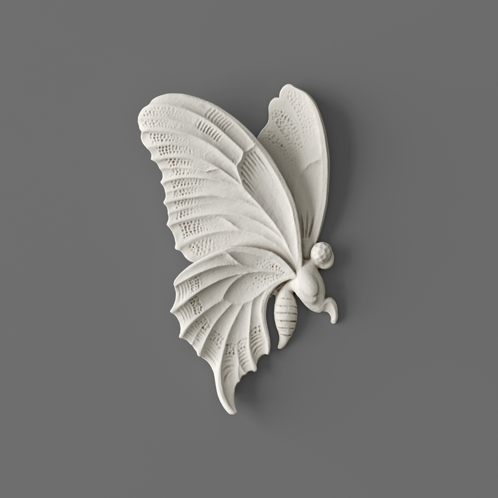 Using molded decoration made of polyurethane NPU-482L, you get a decorative element capable of completely transforming your interior. Delicately carved wings, lace-like texture, and refined forms make this butterfly a true work of art, worthy of admiration.