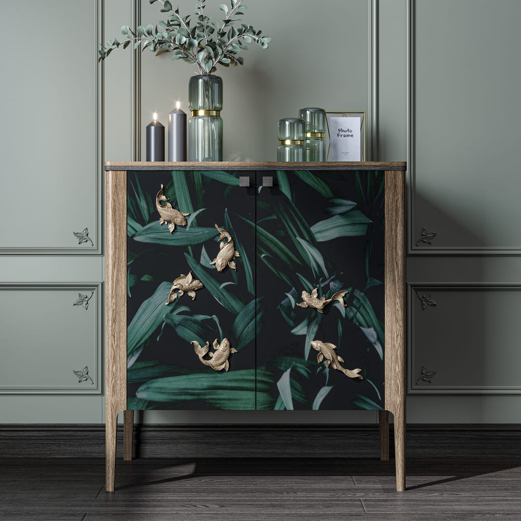molded decoration made of polyurethane Looks great not only on walls but also on furniture items. Dressers, cabinets, and even doors adorned with decorative fish immediately acquire a unique and distinctive style. Elements with gold or contrasting finishes stand out particularly well, emphasizing the luxury of the interior.